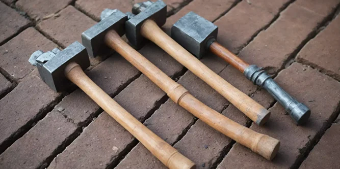 Porównanie młotków brukarskich: stalowy, gumowy i z miękkim obuchu